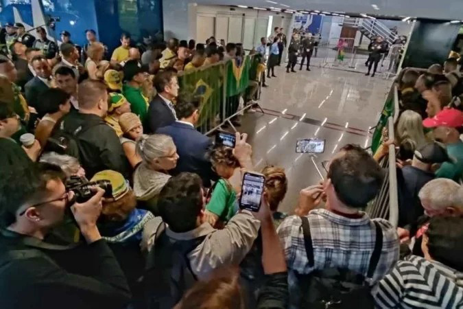 Até a última atualização desta reportagem, Bolsonaro não havia se pronunciado oficialmente. Pelo protocolo montado pela Polícia Federal, agentes da corporação iam entrar na classe executiva do avião para encaminhar o ex-presidente até um carro da PF. Esse é o procedimento padrão para ex-presidentes, quando não saem diretamente no saguão do aeroporto.