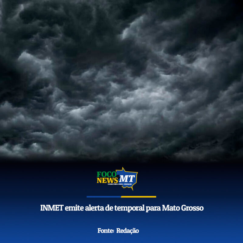 O Instituto Nacional de Meteorologia (Inmet) emitiu um alerta de tempestade para o estado de Mato Grosso.