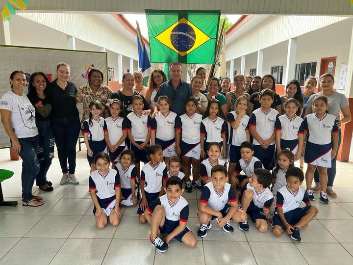 Nesta terça feira (06) de setembro, o Prefeito Municipal Sr. Celso Luíz Padovani acompanhado da Primeira Dama e Secretária de Assistência Social Sra. Cristiane Bulgarelli Padovani e da Secretária de Educação Sra. Karla Blanc Enge, estiveram na Escola Municipal Castro Alves e na Creche Sagrada Família acompanhando a entrega dos uniformes escolares que o município adquiriu com recursos próprios para todos os alunos da rede pública municipal. Camiseta, calção ou shorts saia e tênis… um sonho para qualquer criança e para seus pais! O cuidado com a educação vai dos pequenos detalhes às grandes obras. Município de Marcelândia está fazendo o seu papel de cuidador do presente para que no futuro tenham resultados de sucesso!