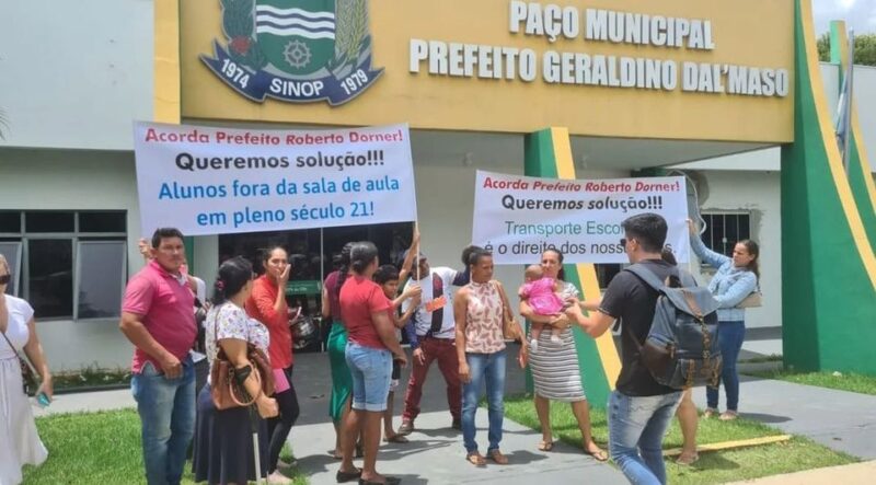 Sinop: Pais de alunos fazem manifesto em frente a prefeitura municipal