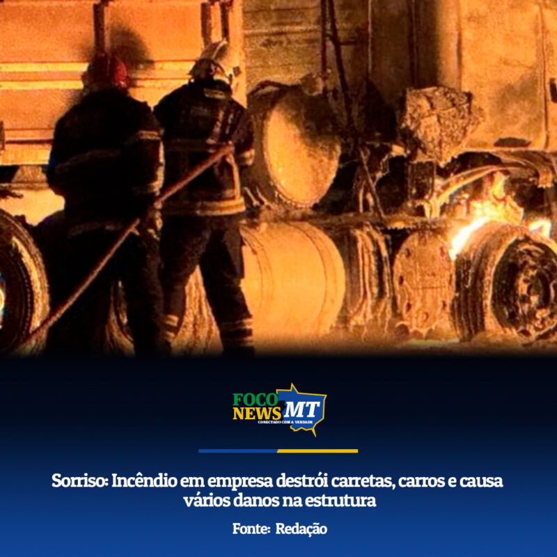 Sorriso: Incêndio em empresa destrói carretas, carros e causa vários danos na estrutura